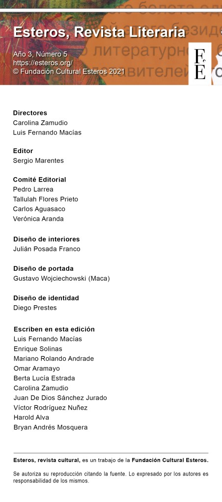 Carolina Zamudio (Curuzú Cuatiá, Argentina, 1973). Poeta y ensayista. Publicó: Seguir al viento (Argentina); La oscuridad de lo que brilla, bilingüe español/inglés (Estados Unidos); la antología Doble fondo XII; Rituales del azar, bilingüe español/francés (Francia); las plaquettes Teoría sobre la belleza y Las certezas son del sol (Argentina); La timidez de los árboles (Colombia); El propio río (Perú) y Vértice, bilingüe español/italiano (Italia). Como antóloga, reunió la obra poética de Luis Fernando Macías, bajo el título Todas las palabras reunidas consiguen el silencio (Estados Unidos). Magíster en Comunicación Institucional y Asuntos Públicos por la Universidad Argentina de la Empresa y Periodista por la Universidad Católica Argentina. Creó y dirige la Fundación Esteros y la revista del mismo nombre. Reside en Uruguay. www.carolinazamudio.org