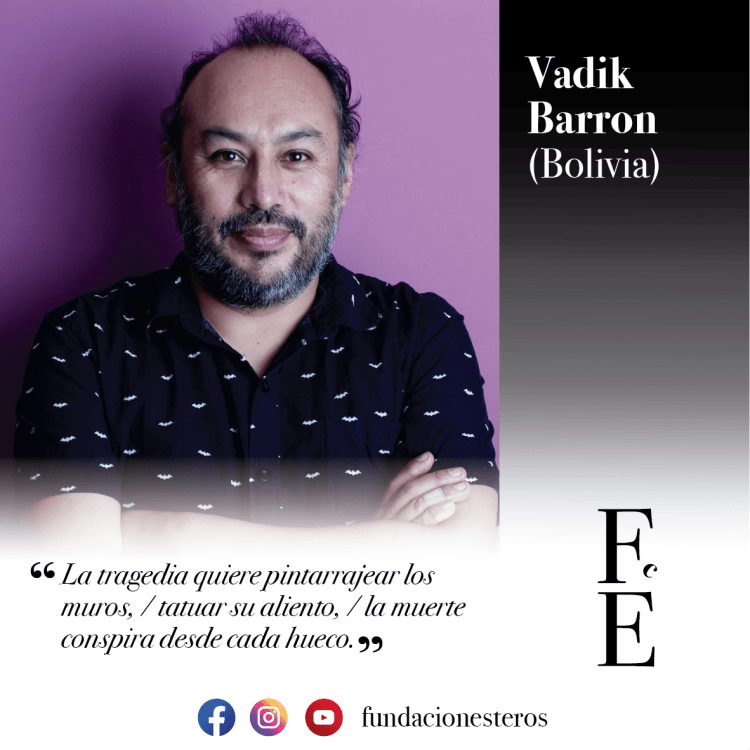 Vadik Barron (Bolivia, 1976). Cantautor y escritor boliviano. Ha lanzado nueve discos. Ha publicado doce libros de poesía y uno de prosa. Ha obtenido los premios nacionales de poesía Yolanda Bedregal (2013), Franz Tamayo (2018) y Edmundo Camargo (2021). Ha ofrecido conciertos y participado de antologías y festivales en Latinoamérica y Europa. Es director de la revista cultural La Trini.