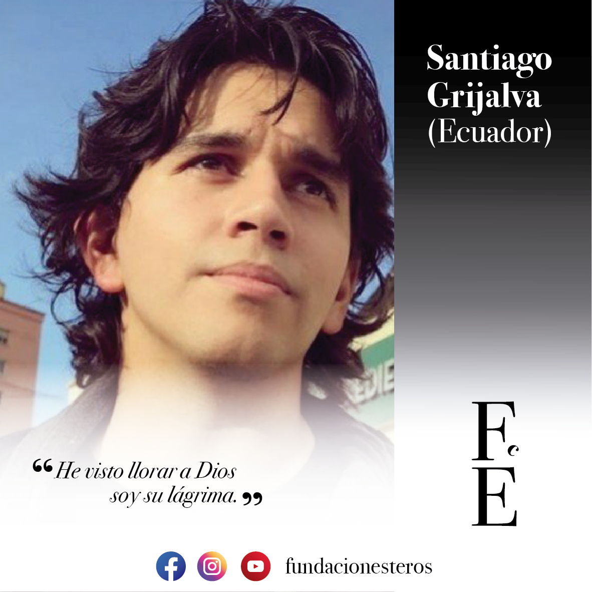 Santiago Grijalva (Ibarra-Ecuador, 1992) Psicólogo Social Comunitario, poeta y editor. Publicó los poemarios; La revolución de tus cuerpos (2015), Arreglos para la historia (2017), Los desperdicios del polvo (2018) Cerrar una ciudad (New York Poetry Press, 2019), Propositti della belleza (Propósitos de la belleza; Raffaelli Editore, 2020); Nos dolerá siempre que sea necesario (Bolivia, 2022). Consta en la Antología de Poesía Española Contemporánea “Y lo demás es Silencio Vol. II” (Chiado Editorial; Madrid, 2016), Seis poetas ecuatorianos (Editorial Caletita; México 2018); está incluido en la selección de poetas ecuatorianos «Voices form the center of the world» realizada y traducida por la poeta Margaret Randall. Sus poemas han sido publicados Revista Aérea Hispano Americana de Poesía (Santiago de Chile; 2018) Utopía (Edición N°93; 2016) Cuando E. P. Thompson se hizo poeta: revista de poesía política (N°4; 2017); Caravansary Revista Internacional de poesía (Colombia; 2019); Letras del Ecuador (N°211; 2020), Además, en varias revistas digitales en Iberoamérica. Participó como invitado en Festivales nacionales e internacionales. Participó como invitado en el Festival Internacional de poetas Poesía en Paralelo Cero (Ecuador, 2016) Las líneas de su mano (Bogotá,2018), Jauría de palabras (Bolivia, 2019). Actualmente es subdirector del Encuentro de poetas en Ecuador “Poesía en Paralelo Cero”.