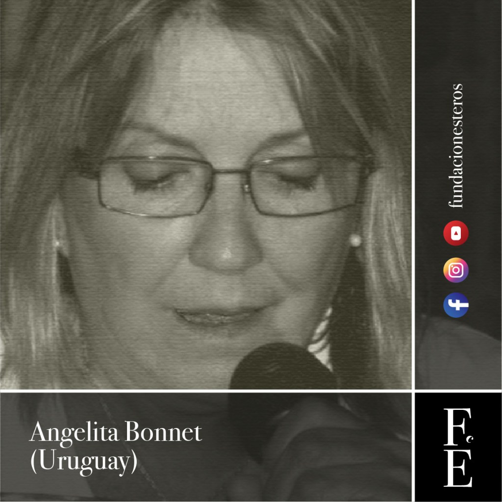 Angelita Bonnet: Nació en Punta del Este, Uruguay. Profesora de Idioma Español. Intervino en cursos de Perfeccionamiento Docente y ejerció la docencia en diversos liceos de Montevideo. Profesora de Lingüística y Tutora de Lengua y Literatura en el Centro Regional de Profesores del Sur (CeRP). Es autora y coautora de numerosas publicaciones sobre su materia. Su gusto por la lectura la llevó a escribir ficción y a incursionar en la poesía. Participó con sus creaciones en Antologías varias en su país y en la Argentina.