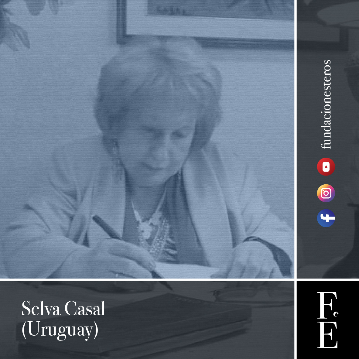 Selva Casal, hija de Julio, poeta y creador de una revista que fue y es célebre: Alfar. Hermana de Julio, de Marynés, de Rafael, todos poetas. Selva trabajó, labró una vida y sus numerosos libros con recato y pasión, que son las claves de su personalidad. Vive aquí en Montevideo, en “la selva de asfalto”, y en Solymar con los pájaros de la libertad. Está como una paloma azul sobre sus cuatro hijos. Recato y pasión son sus signos. Lleva una granada, un sol bajo el vestido angélico.