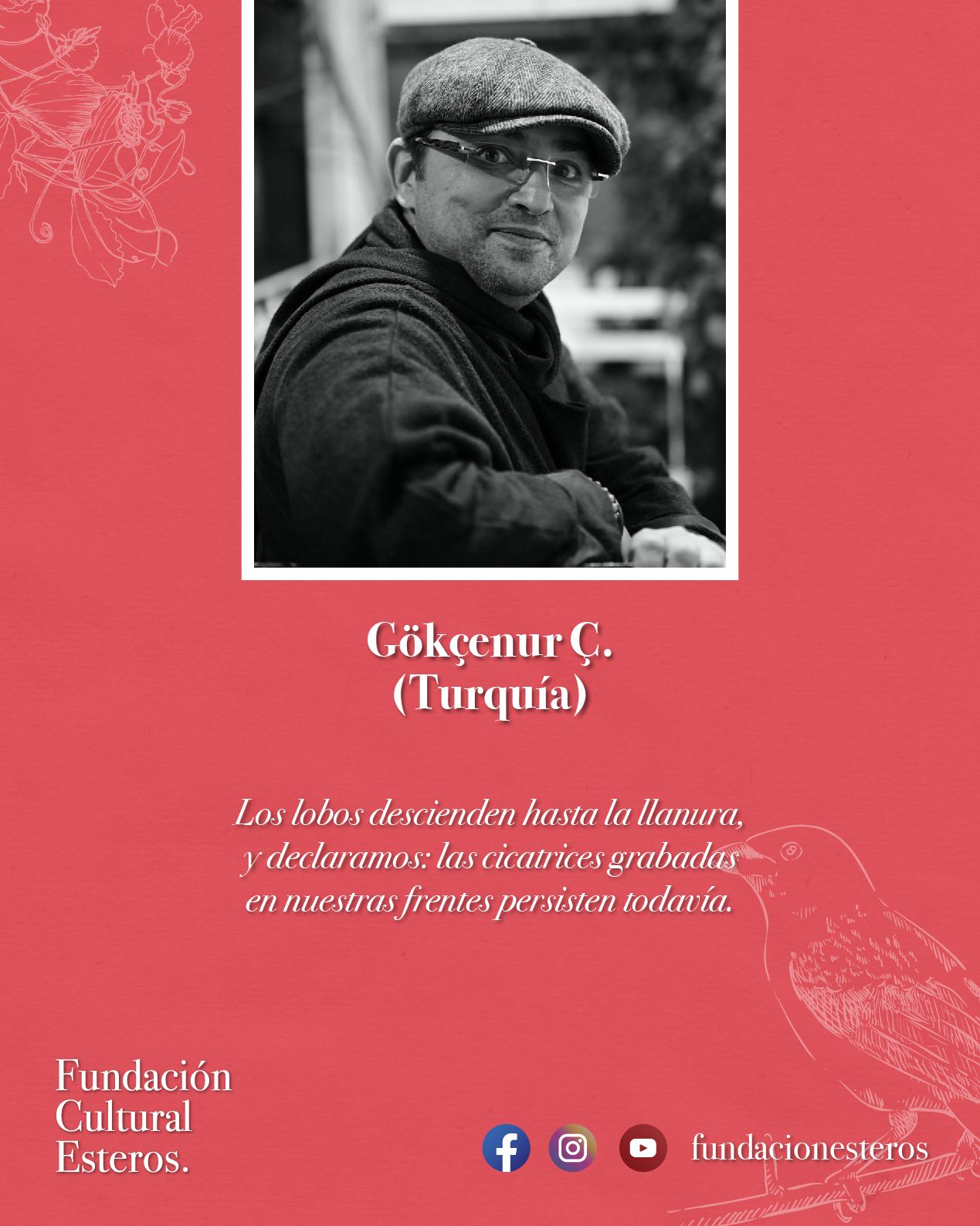 Gökçenur Ç. Poeta, traductor y editor que vive en Estambul. Tiene siete libros de poesía en turco, y sus poemas han sido traducidos a treinta diomas. Ha traducido al turco las obras de Wallace Stevens, Paul Auster, Ursula K. Le Guin, entre otros. Es el editor de la revista turca Çevrimdışı İstanbul (Estambul Offline), coeditor de Poetry International, y es miembro del consejo editorial de la revista literaria internacional Blesok con sede en Macedonia. Es miembro del Taller Internacional de Cunda para Traductores de Literatura Turca; curador y codirector de Word Express; codirector de festivales internacionales de poesía como Estambul Offline, Mosaico de Metáforas Gaziantep y Días de Poesía Turco-Americana; es miembro de la junta del Festival Internacional de Poesía de Nilüfer y del Movimiento Internacional de Poesía Kritya.