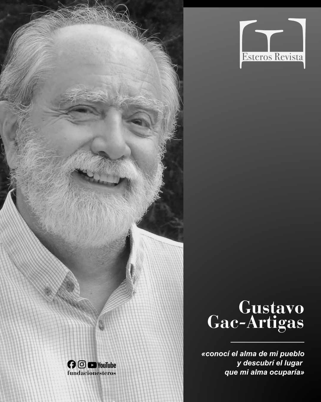 Gustavo Gac-Artigas (Chile, 1944). Es miembro de: la Sociedad de Escritores de Chile, PEN Chile y PEN America y miembro correspondiente Academia Norteamericana de la Lengua Española. Su obra ha sido parcialmente traducida al inglés y al francés. Ha obtenido los premios: «International Latino Book Award», «International Book Award», «American Legacy Book Award», «Poetry Park», «Róterdam», «Festival Mihai Eminescu». Su más reciente galardón: «Le Coq», reproducción de escultura de Brâncuşi, otorgado por la Academia Tomitana (2025), en reconocimiento a la dimensión de su obra poética.