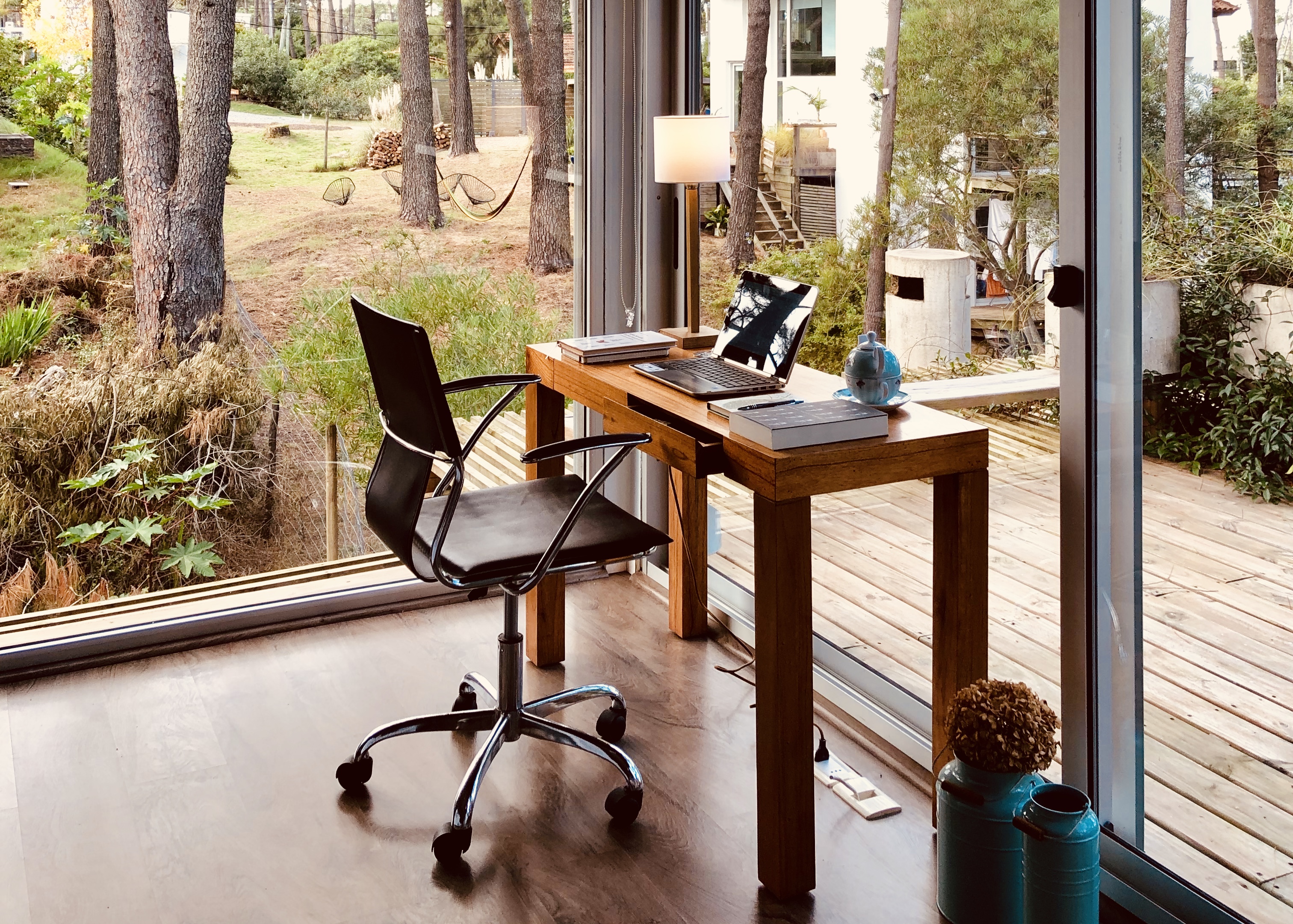 Conscientes del impacto del entorno en la creatividad, la Fundación ofrece un sitio de trabajo ideal en medio de un bosque de pinos, donde la presencia del agua, la tierra, el calor del fuego y la pureza del aire son fuente de energía y productividad. Además, el lugar cuenta con una pequeña biblioteca, y está ambientado en torno a la palabra.